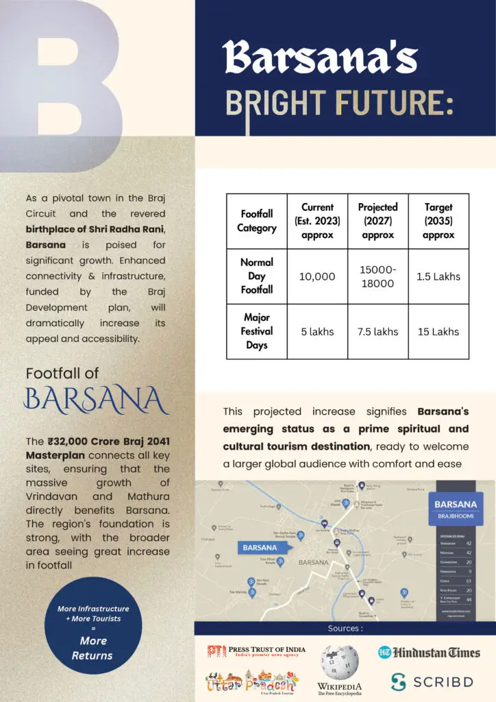 Despite attracting millions of visitors, Barsana has very limited hotel and homestay options. During major festivals, this forces many to travel to neighboring cities for accommodation, creating a significant gap in the hospitality market. Aanandam Valleey invites you to seize this investment opportunity. By providing modern, high-quality lodging, you can meet the high demand, offer a needed service to pilgrims, and secure a profitable asset in a market ripe for growth.